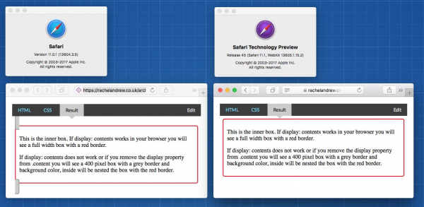 You can see it when we use this example by Rachel Andrew on Safari 11.0 and Safari 11.1 Technology Preview: