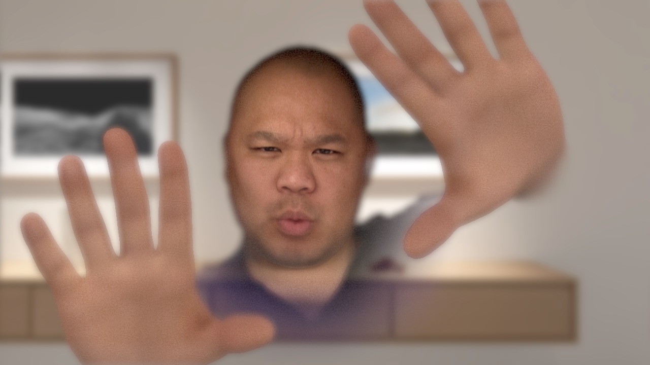 But that's not all — if you pull a window up close to your face, you can tap and swipe just like a multitouch screen!